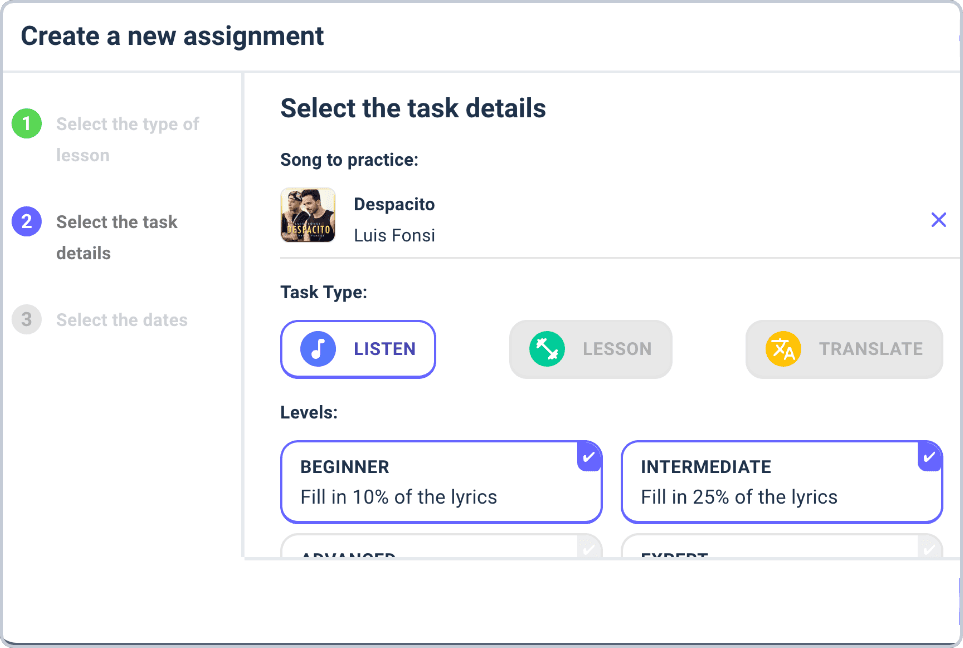 Track your students' progress with Sounter. Easily monitor how your students are doing. Choose songs and assign tasks to reinforce your curriculum beyond the classroom for fun, continuous learning.